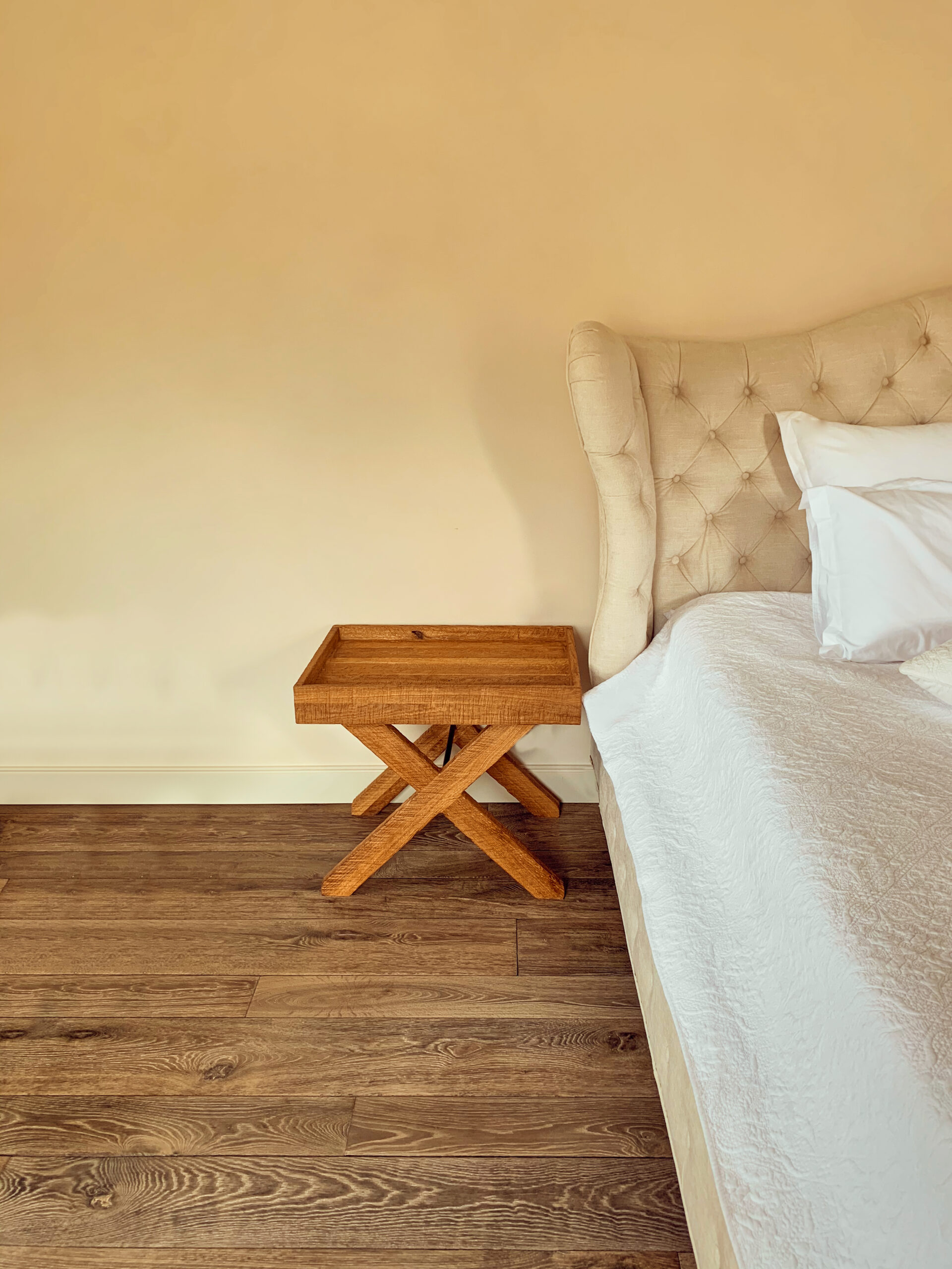 - Прикроватные столики (материал: массив дуба, стальной пруток, декоративная резьба «запил», обработка дерева маслом)