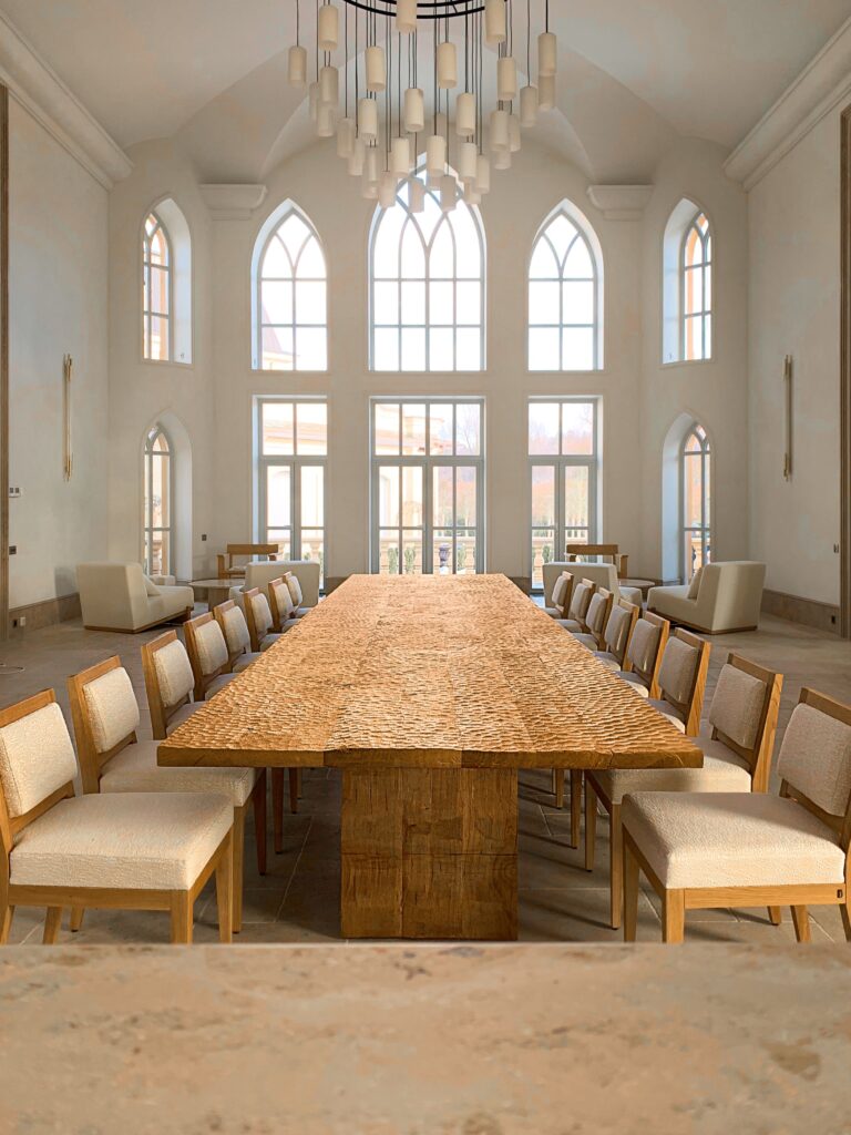 - Стол обеденный (материал: материал: массив дуба, декоративная резьба «под стамеску», обработка дерева маслом)