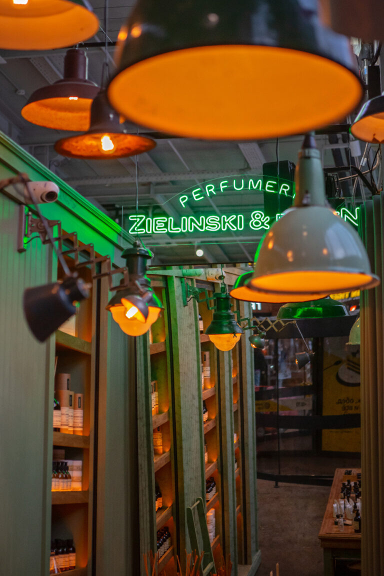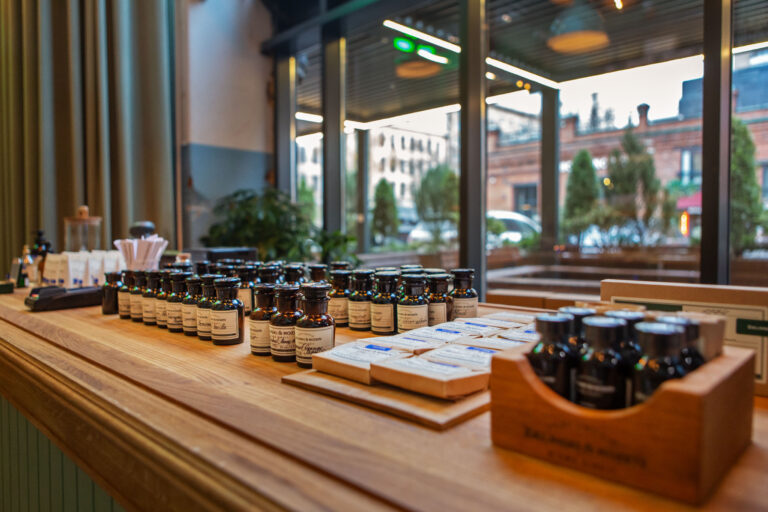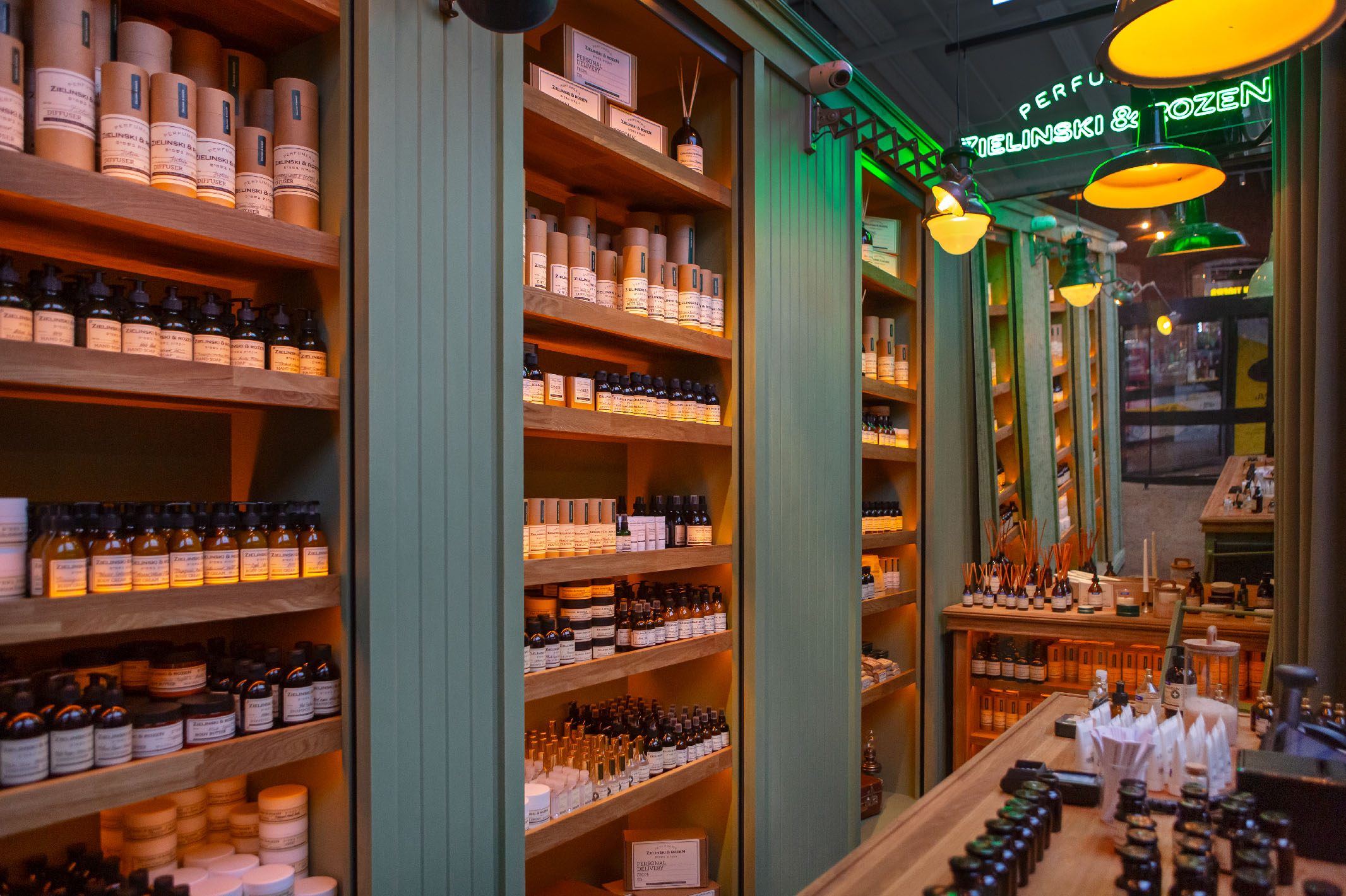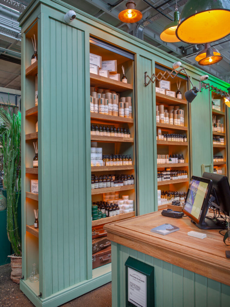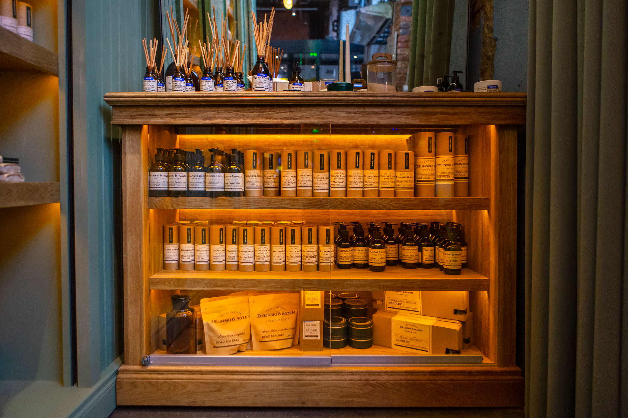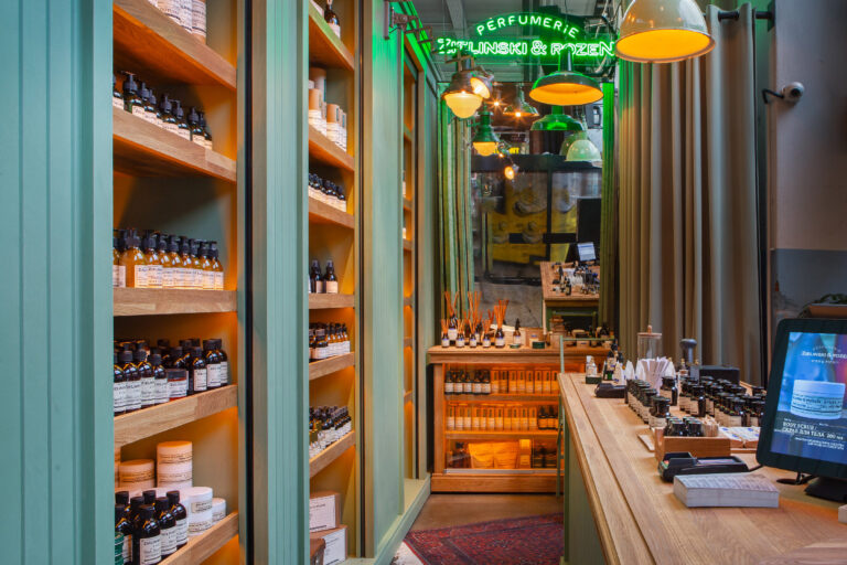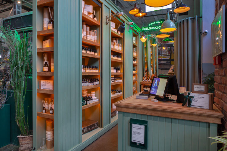 - Полностью изготовлено всё торговое оборудование (используемый материал: массив дуба, сталь, зеркало, светодиодная подсветка, автоматические роллетные системы, фурнитура).